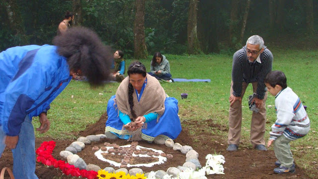 La líder espiritual Andrea Herrera Donoso, conocida como Mamá Andrea del Camino Rojo del Fuego Sagrado de Itzachilatlan. Portadora de los Altares de Channupa, de la Media Luna y del Templo de Luna, Danzante del Sol, Custodia del Templo y Rezo de la Luna, y Sembradora en la Montaña de Búsqueda de Visión desde el 2002 llevó a cabo el ritual del Fuego Sagrado del Día Uno, representante de los del centro geográfico de la Tierra, el Ecuador y afirmó a Francisco que este es el momento en que la Profecía del Cóndor y del Águila se realizará.